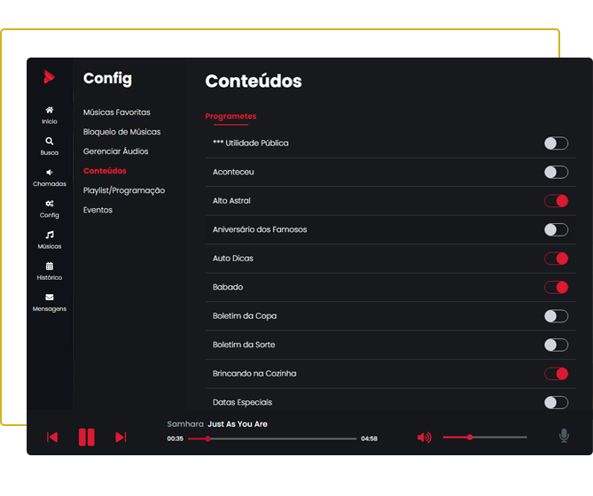 Volumes diferenciados para músicas e propagandas.